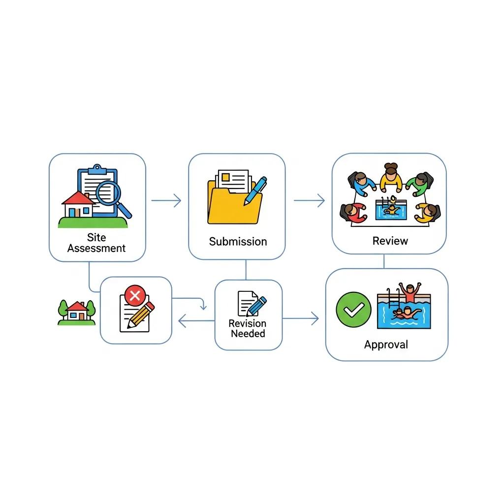 | Scaled site plan | Shows property lines, setbacks and pool footprint | Confirms placement and avoids setback variances; 2–6 week review |